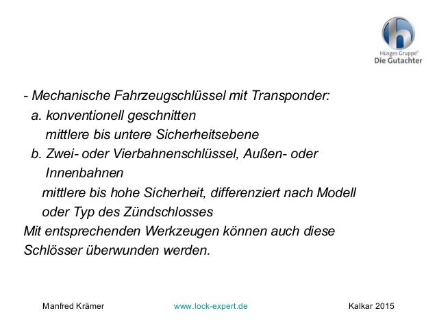 10. Fahrzeugschlüssel mit Transponder Manfred Krämer www.lock-expert.de Kalkar 2015